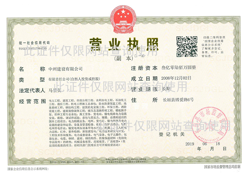 Copyright 2019 中州建設有限公司 版權所有 豫ICP備19003361號-2 豫公網安備41072802000605 營業執照信息公示